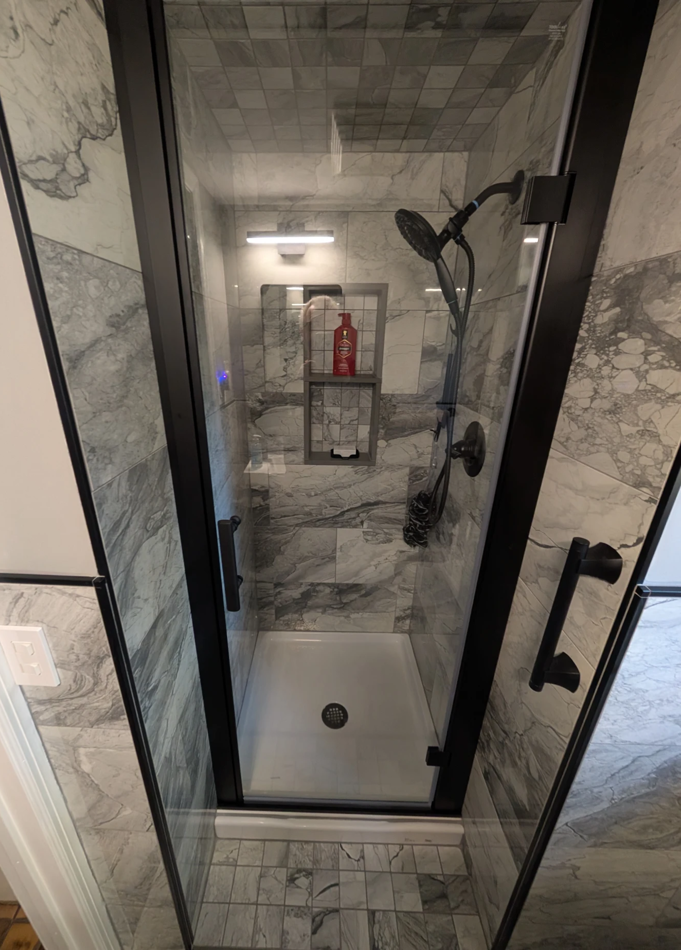 I had my Bathroom and Shower renovated. Complete rip out walls floor shower sink and all the plumbing.
